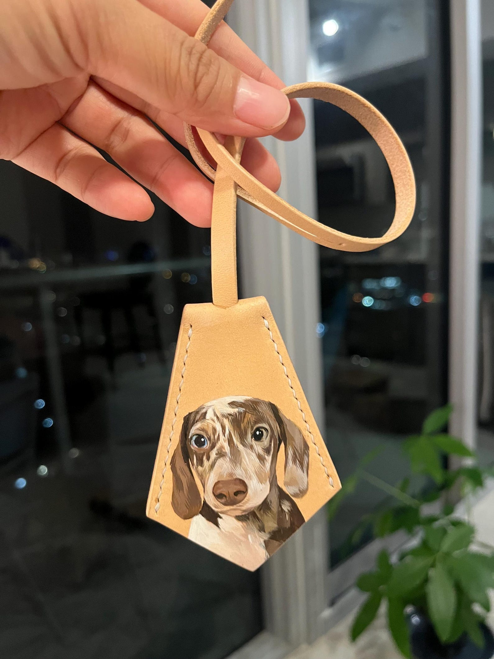 BeanieBaeArt Hand-Painted Pet Portrait Leather Bag Tag, $, available at Etsy