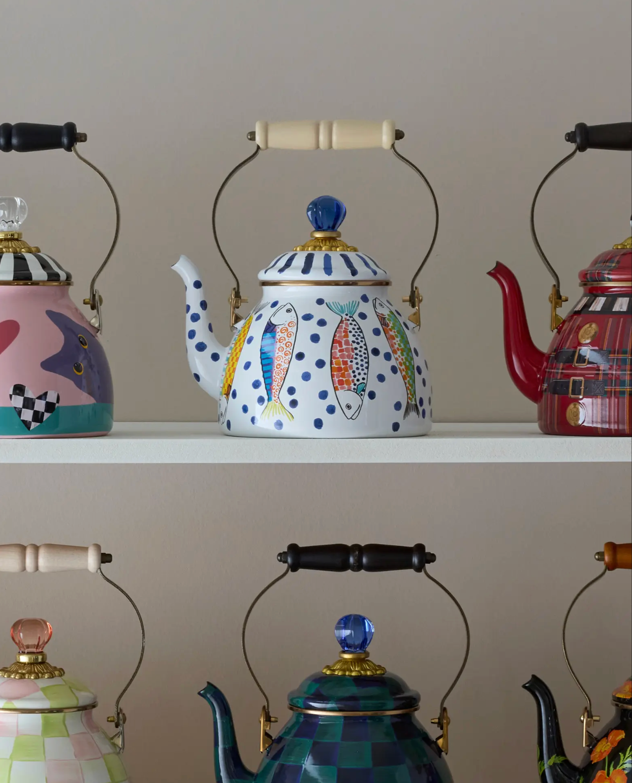 MacKenzie-Childs Go Fish Enameled Steel 2-Quart Tea Kettle