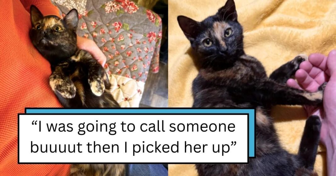 Some kittens imprint on us before we get a chance to fight back with logic, but this affectionate tortie kitten proved to be a bona fide kitty hypnotist. After getting abandoned by the highway, the resilient feline made her way towards the closest human settlement: A gas station. From there, she spotted someone who she knew would save her, spellbinding the human instantly and becoming the cutest, most undeniable kitten in the world.