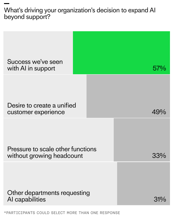 The two most cited driving forces behind this decision are the success support has seen with AI to date and a desire to create a unified customer experience.