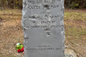 This roadside marker in Bienville Parish, Louisiana marks the site where infamous outlaws Bonnie Parker and Clyde Barrow were ambushed and killed on May 23, 1934, bringing one of America’s most notorious crime sprees to an end.