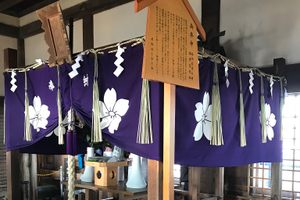 The shrine was always near the castle, but it was moved during the first renovation to a nearby temple. However, ever since this happened bad things occured in the castle, and the shrine was quickly moved back to the courtyard. Later during the restoration in the Showa era, the shine was moved to its current place. It still gets many donations and keeps the castle safe.