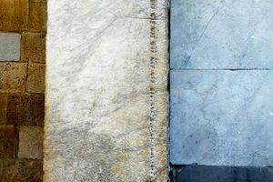 Historically, however, these marks are ancient drill holes from a Roman decorative element that was later repurposed as a marble block for the cathedral’s construction.